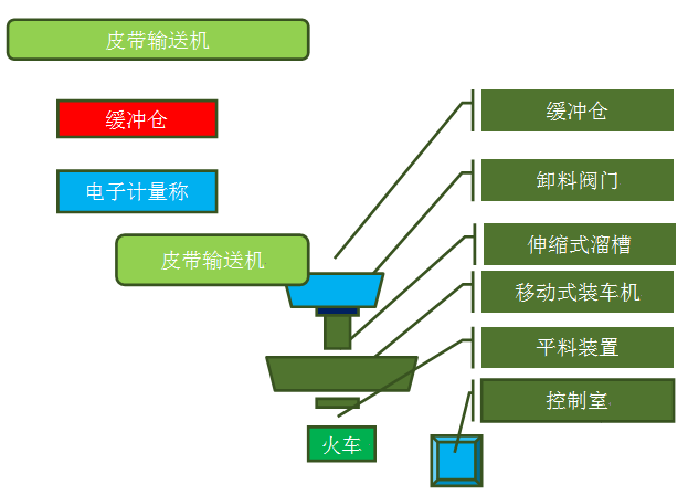 該快速定量裝車(chē)系統采用快速計量系統和移動(dòng)裝車(chē)系統相結合,計量系統采用靜態(tài)計量,精度大于5‰。該系統主要由輸送系統、計量裝車(chē)系統(布料機構、緩沖料倉、漏斗型定量倉、稱(chēng)重系統、鄂式配料閘門(mén)、平板閘門(mén))、軌道移動(dòng)式裝車(chē)裝置(平倉系統)、控制系統、除塵系統等。 |